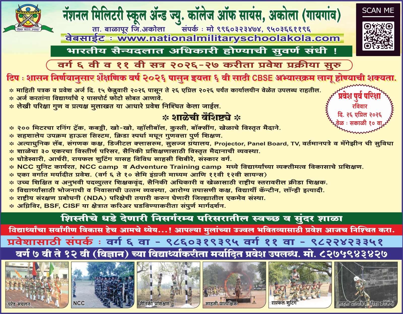 National Military School and Junior College of Science, Gaigaon, Akola is one of the renowned and reputed school in Akola district run by ‘The Maharashtra Institute of Rural Development.’ Our school has been established in the year 2003 with a view to impart military discipline and training along with academic excellence to facilitate the entry of the youth in Armed services. The school was upgraded to Junior college in year 2008. At present the school is equipped with two sections from classes 6th to 10th and one section of science stream for classes XI and XII.